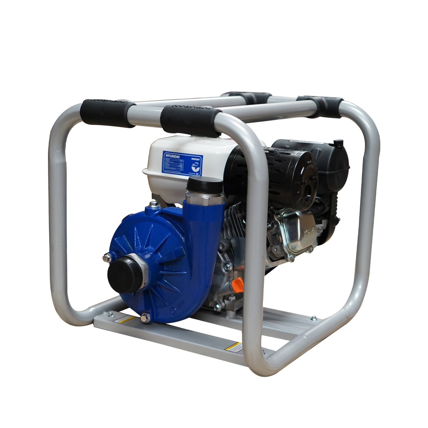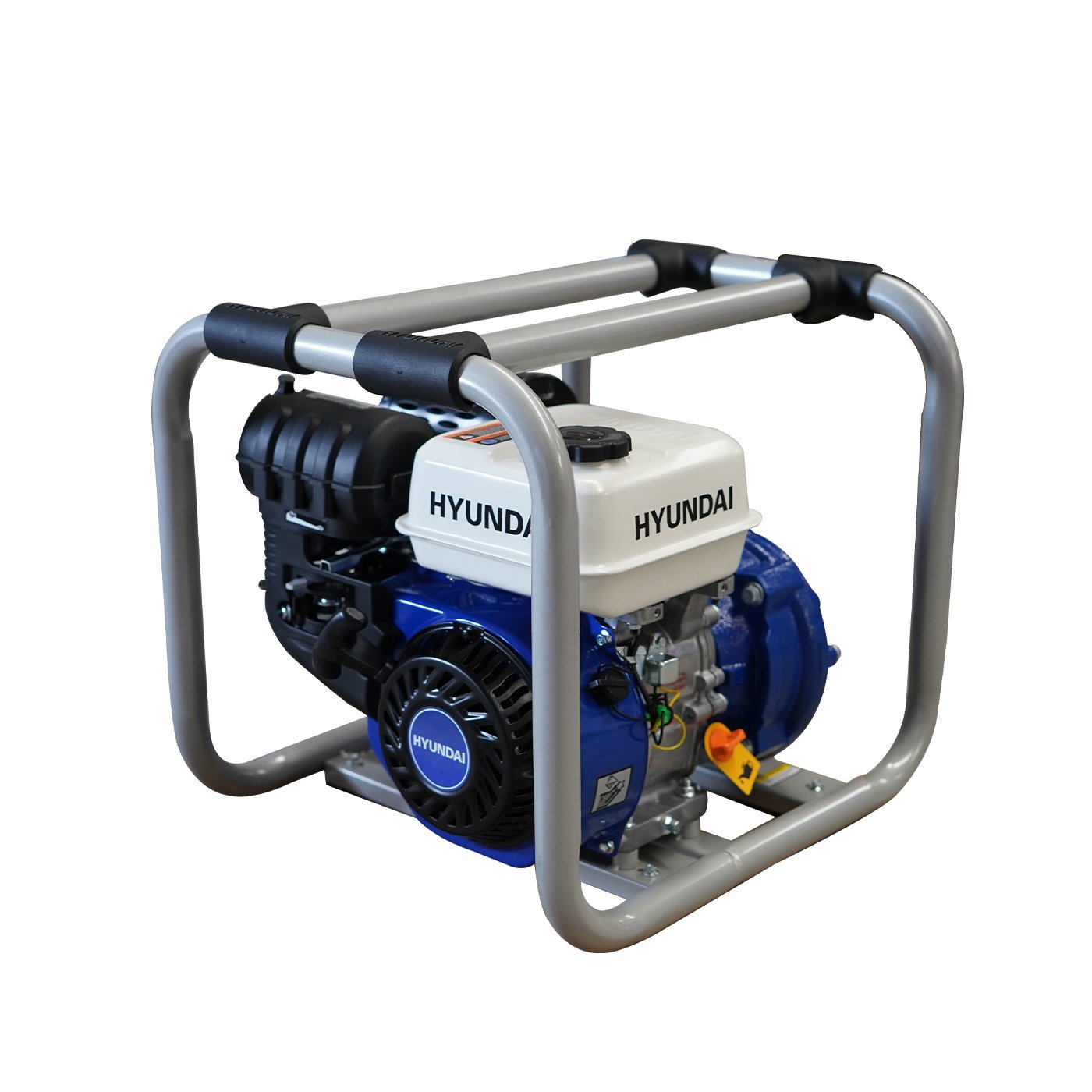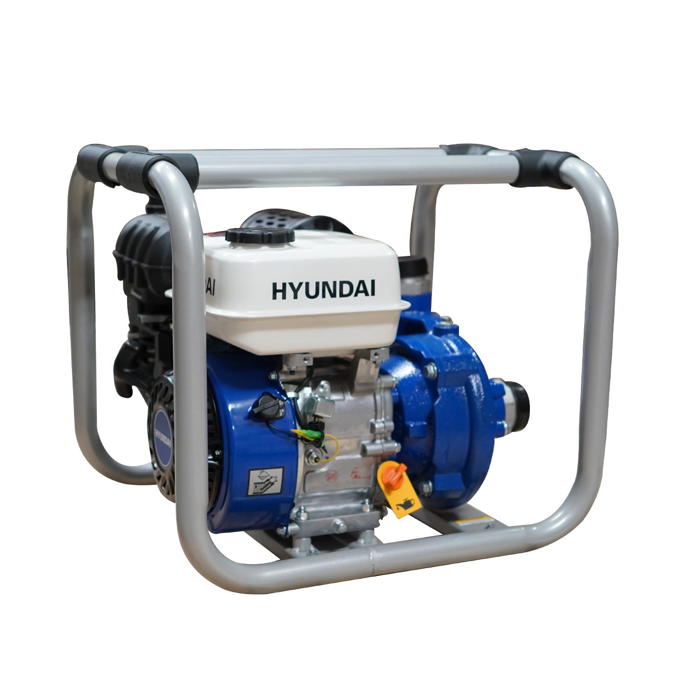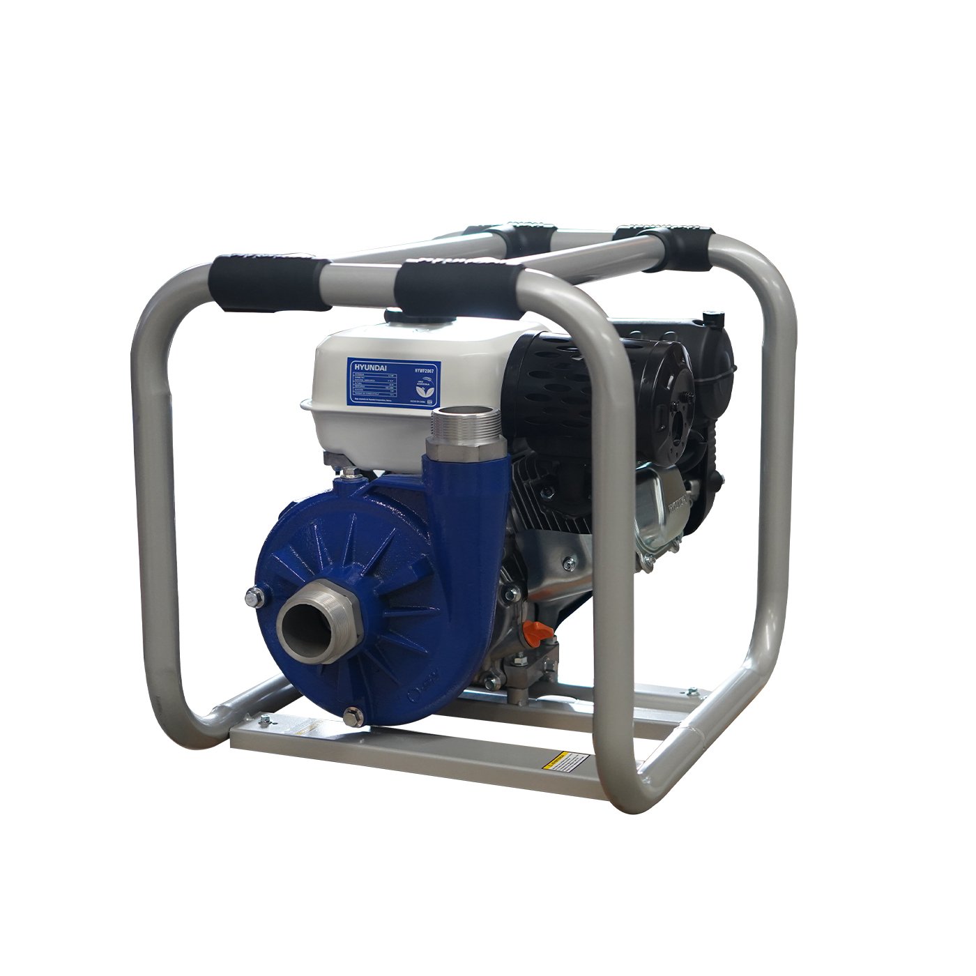 EQUIPO DE RIEGO DE ALTA PRESION PROFESIONAL Marca: HYUNDAI Motor: 4 tiempos Potencia: 6.7hp Diametro de succion/descarga: 2×2″ Altura: 63m Descarga: 400 L/min Succion: 8 m Tanque de combustible: 3.6 litros Peso: 29 kg