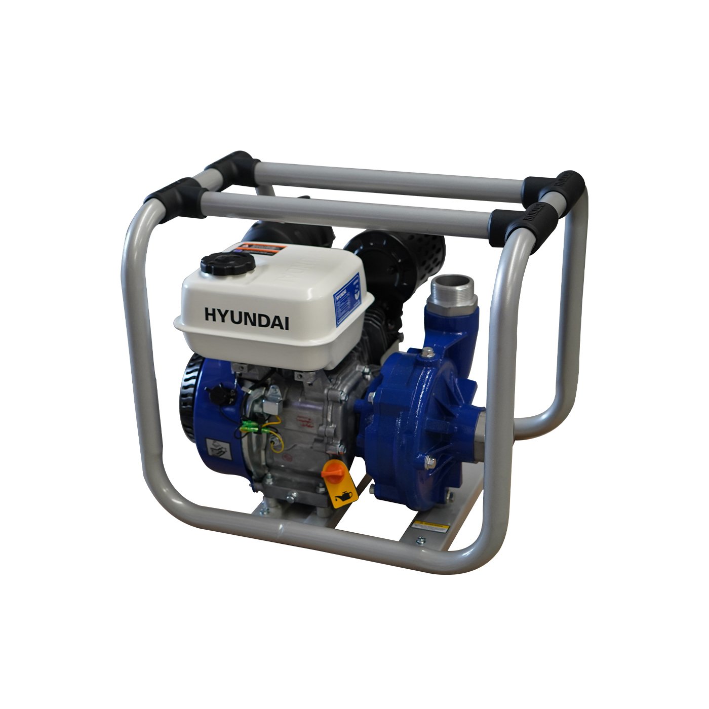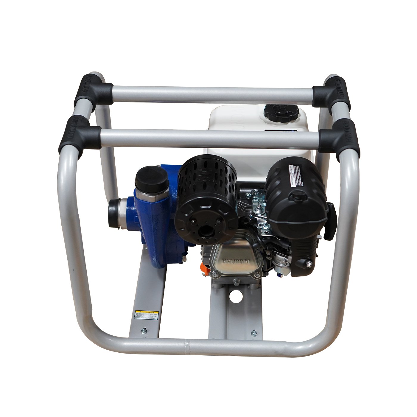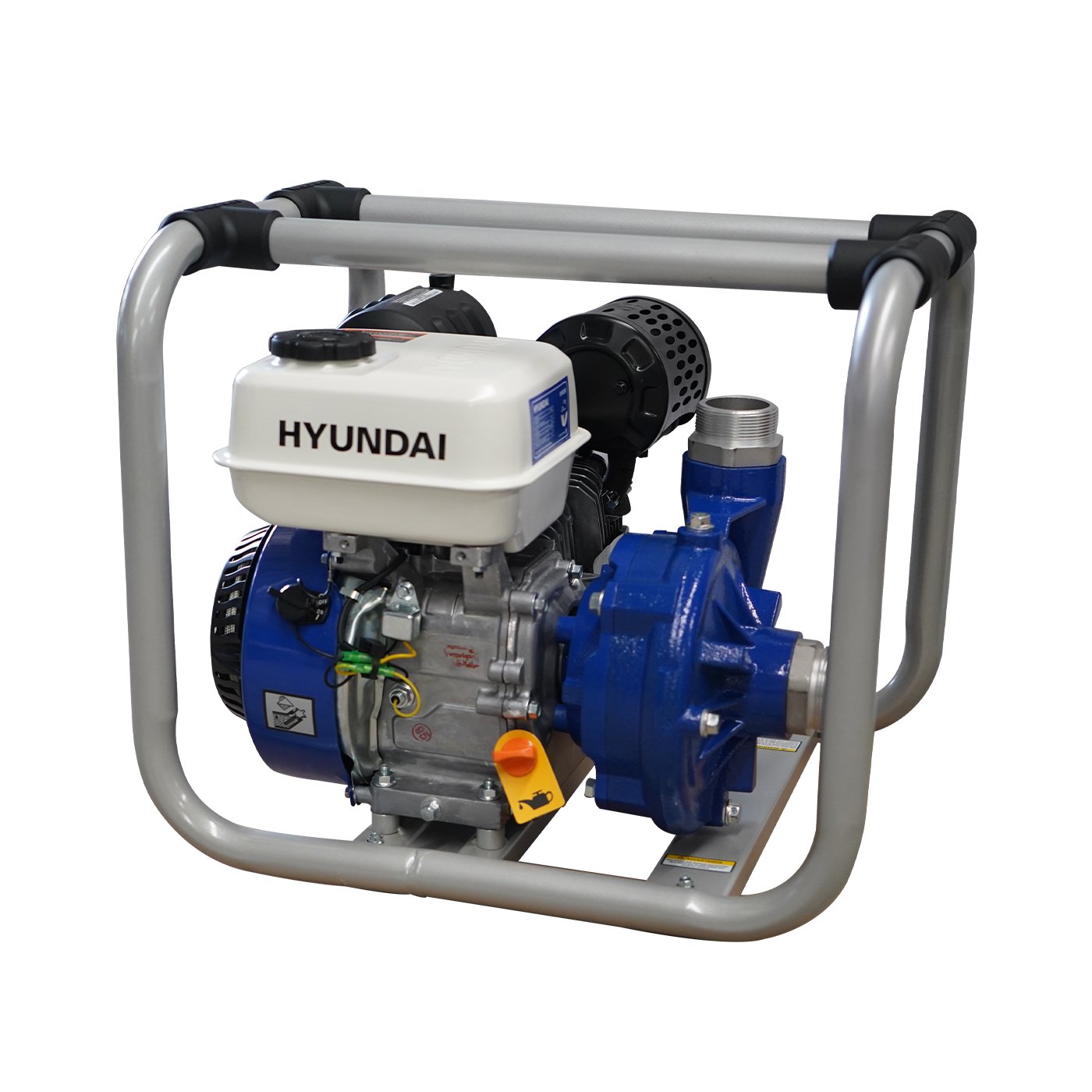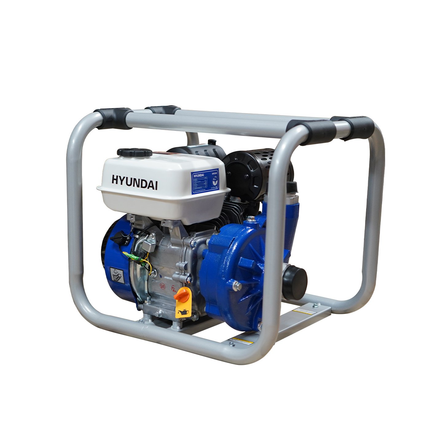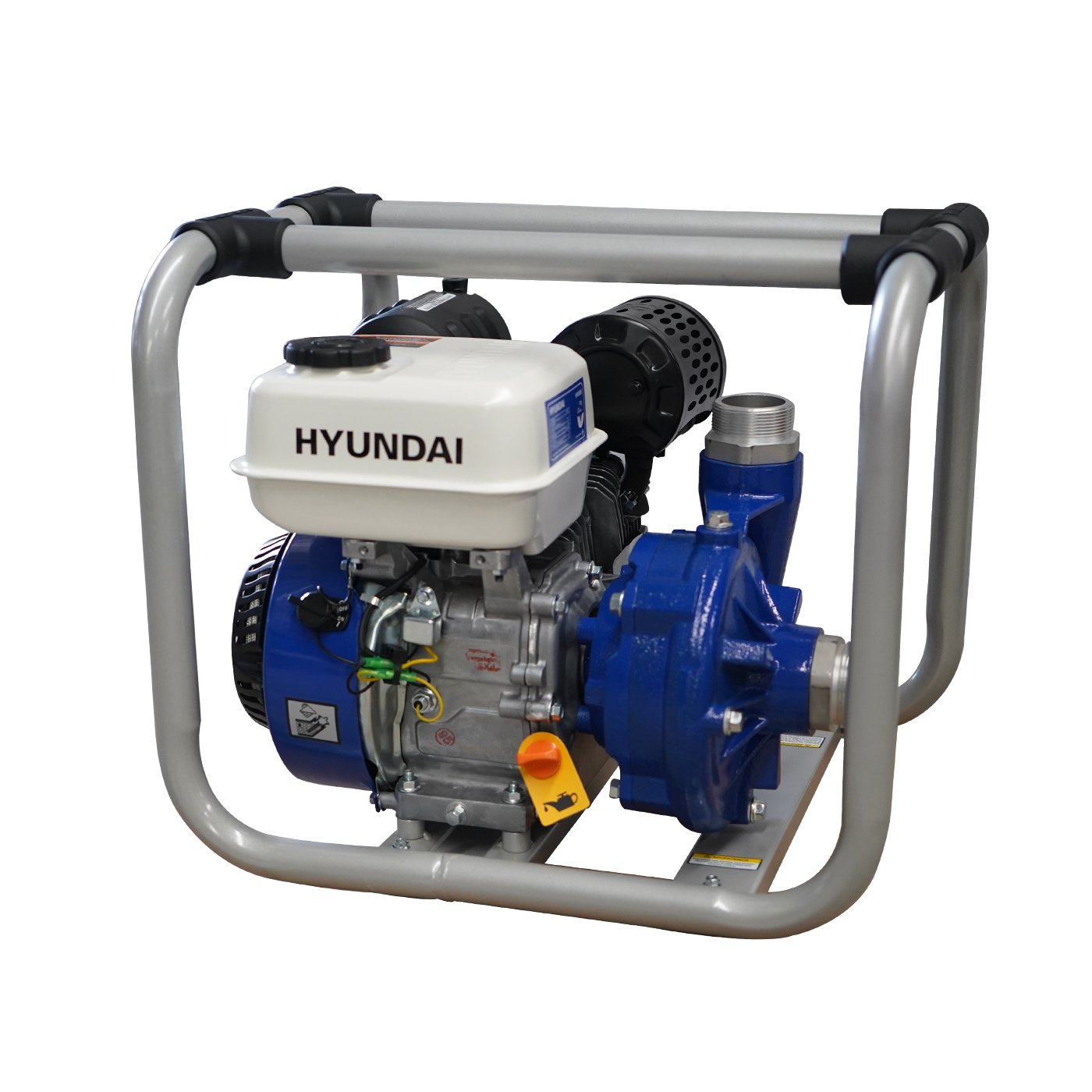 EQUIPO DE RIEGO DE ALTA PRESION PROFESIONAL Marca: HYUNDAI Motor: 4 tiempos Potencia: 6.7hp Diametro de succion/descarga: 2×2″ Altura: 63m Descarga: 400 L/min Succion: 8 m Tanque de combustible: 3.6 litros Peso: 29 kg