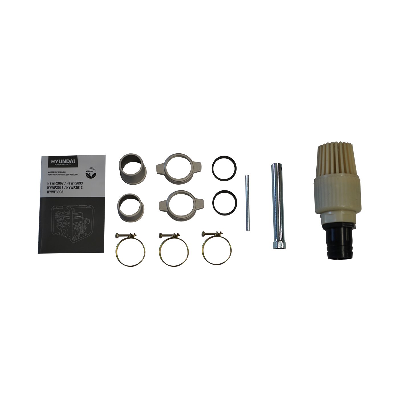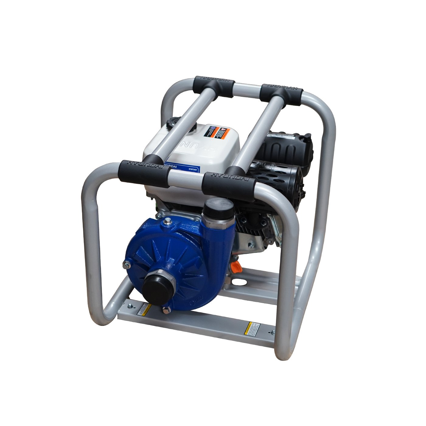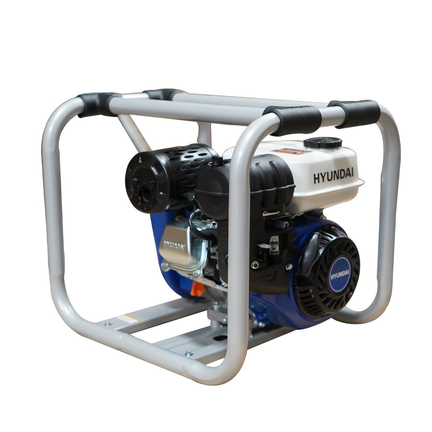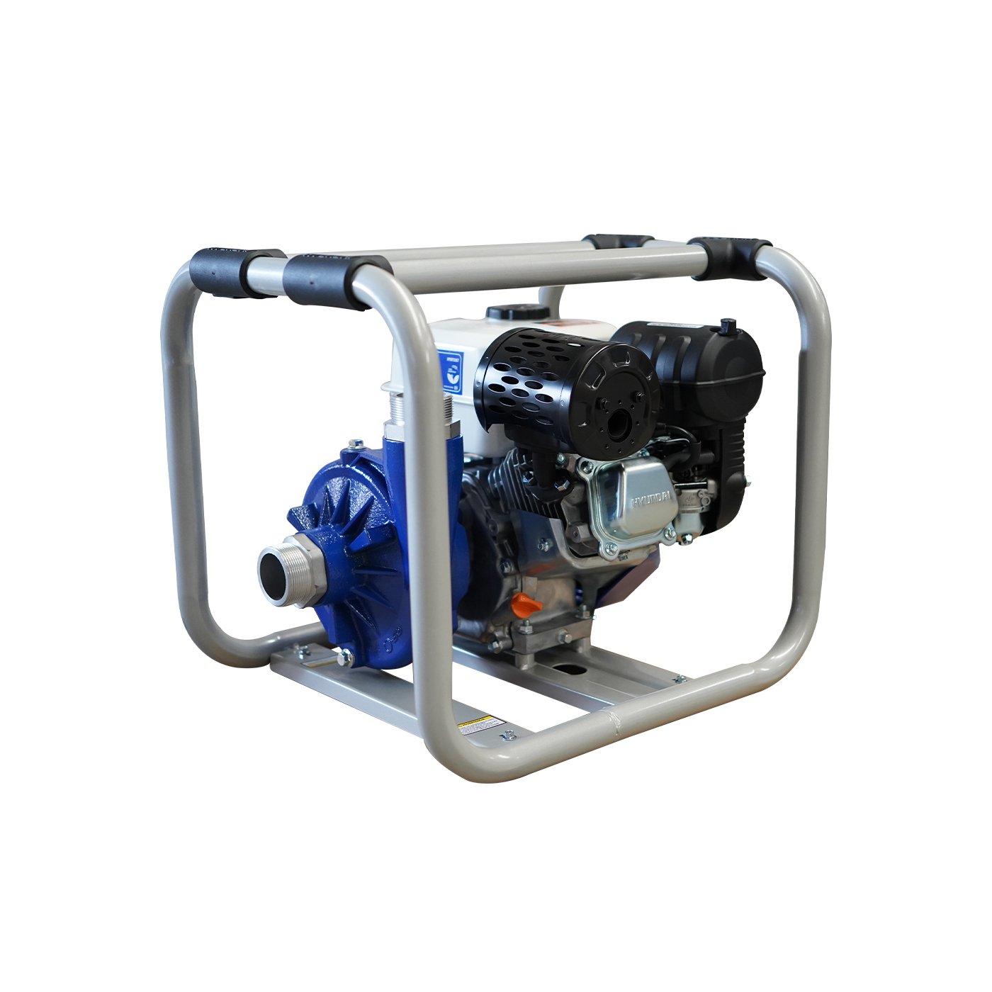 EQUIPO DE RIEGO DE ALTA PRESION PROFESIONAL Marca: HYUNDAI Motor: 4 tiempos Potencia: 6.7hp Diametro de succion/descarga: 2×2″ Altura: 63m Descarga: 400 L/min Succion: 8 m Tanque de combustible: 3.6 litros Peso: 29 kg